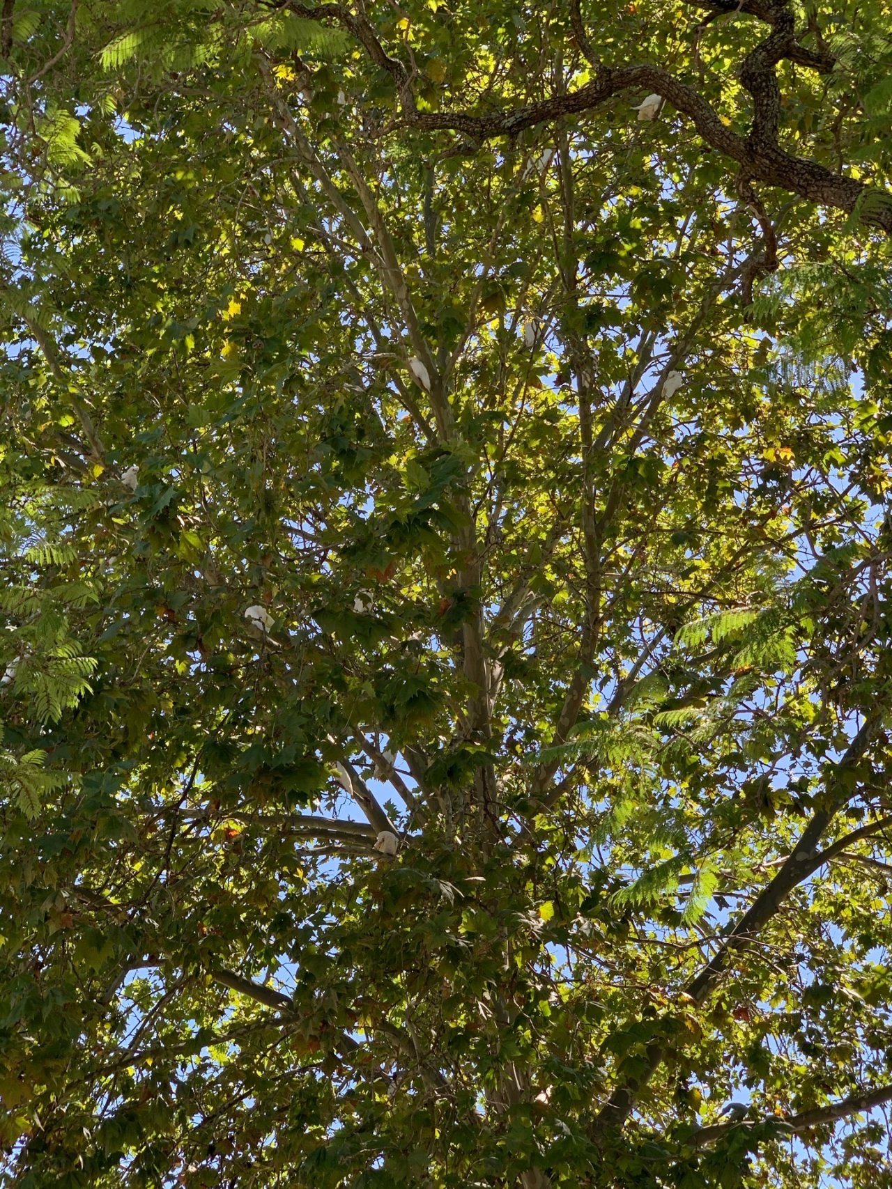 Little Corella spotted by Sean Serduk: “Most of the little corella are just sitting in the tree keeping out of the heat and two of the birds are grooming themselves” in the Big City Birds App on 26.02.2021