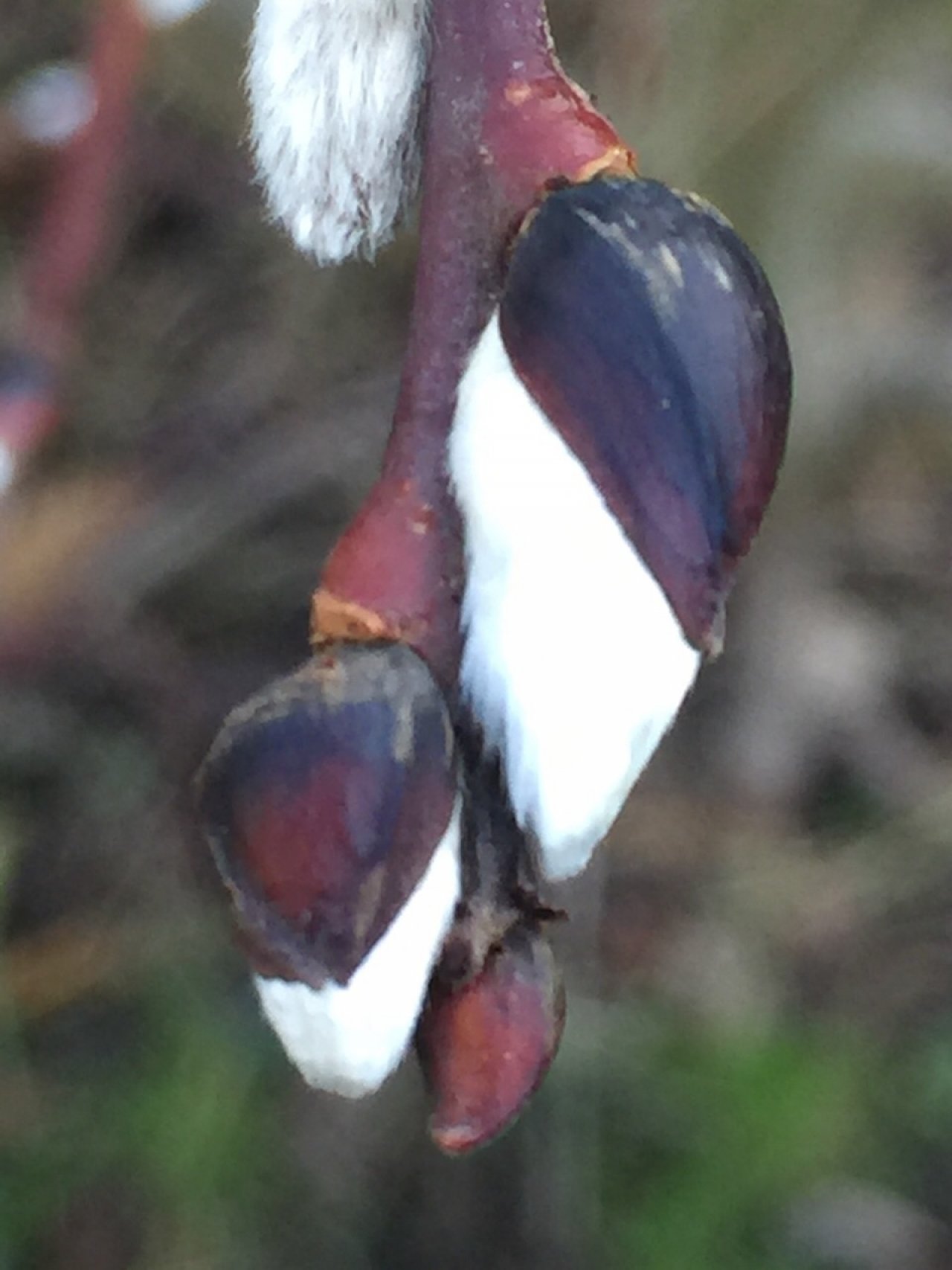 Sal-Weide spotted by Christa Wiener: “unglaublich - zu dieser jahreszeit bildet die saal weide bereits ihre kätzchen ...))) 🔴🔴” in the Naturkalender App on 05.01.2021