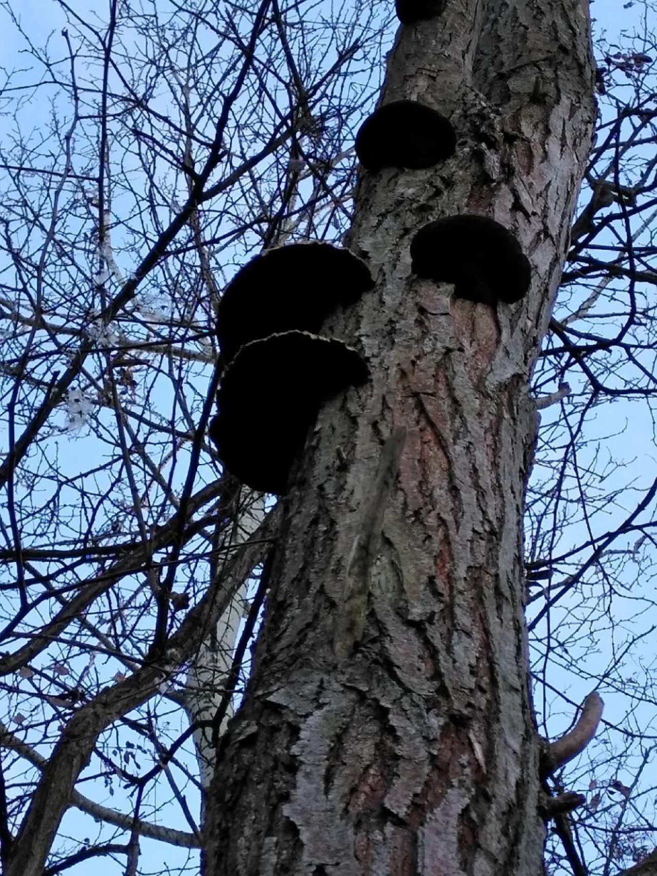 scheibenförmige Pilze spotted by TheOSWR: “Am selben baum wie der feuerschwamm, nur weiter oben, zu weit um eine Oberseite zu fotografieren.. Konnte auch nicht richtig erkennen ob lamellen oder röhren, wenn lamellen dann müssten die aber sehr sehr eng sein. Was mich noch wundert ist, dass der frkp oben weißlich ist und unten dunkel, das passt zu gar keinem porling den ich kenne..Vielleicht irgenein ionotus?” in the Pilzfinder App on 30.12.2020