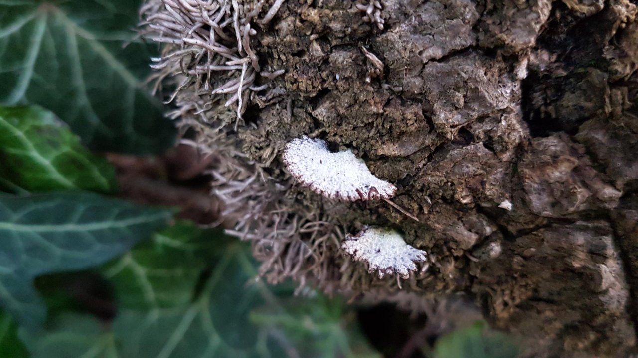 Spaltblättling spotted by Ka vonSeiten: “Hübsche Spaltblättlinge auf Efeu Totholz im Belvedere, Wien” in the Pilzfinder App on 30.12.2020