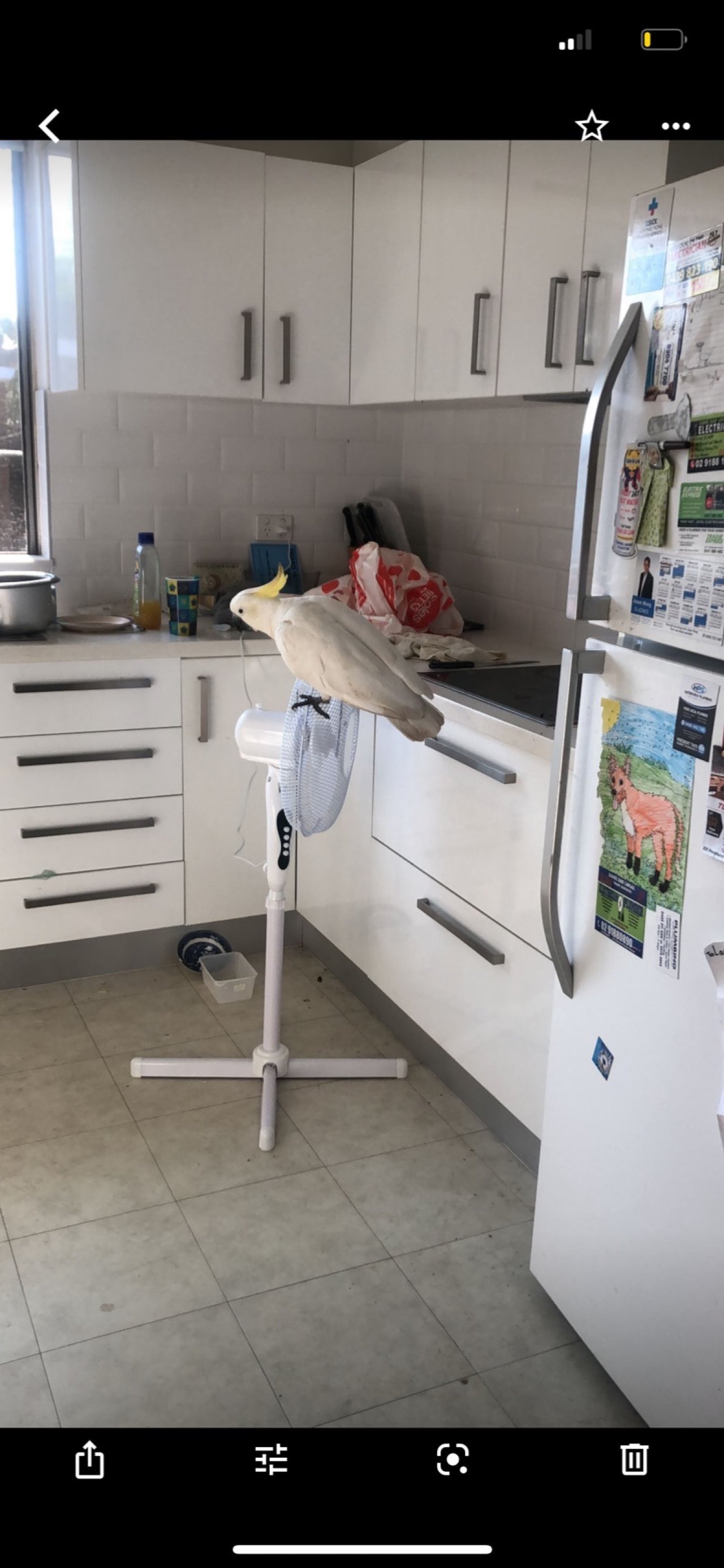 Sulphur-crested Cockatoo spotted by Magdalana Conin: “I woke up to a cockatoo in my kitchen! I have two cats and two dogs and I don’t know how they didn’t see this guy but he wouldn’t leave so after two hours I had to kick out my flyscreen 😬 little bugger messed up the kitchen😂😂” in the Big City Birds App on 24.12.2020