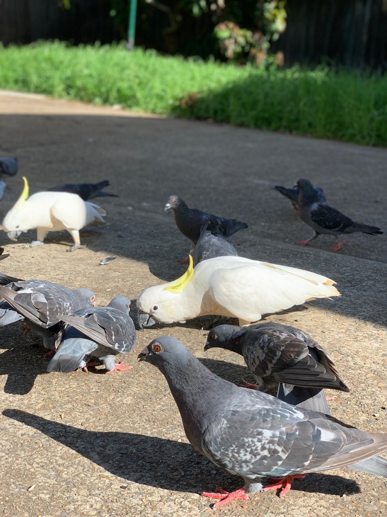 Sulphur-crested Cockatoo spotted by Magdalana Conin: “So these two are not part of my flock. My cockatoos love me and will jump on my shoulders and head and arms even though I’m careful not to pet them or anything but these two are terrified of me, I know there are two other flocks nearby so they’re a mated pair from another flock and they only came once my flock left. My flock turned up burnt during the Aussie bushfires so they moved into an area that already had flocks but they’re really good at staying in their own territory usually.” in the Big City Birds App on 25.01.2021