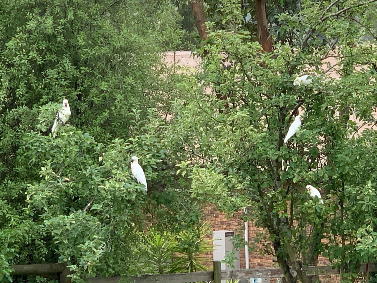 Sulphur-crested Cockatoo spotted by RosieCockatoo: “Group of 5 Sulphur-crested cockatoos in the apple trees. Also 2 little corellas” in the Big City Birds App on 15.12.2020