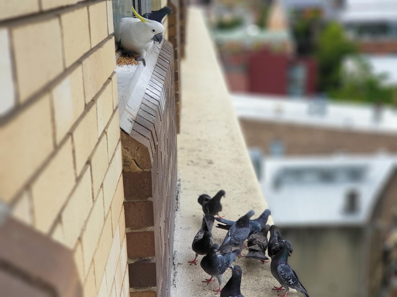 Sulphur-crested Cockatoo spotted by Tom Massey: “Cockatoo is defending seed from a flock of pigeons.” in the Big City Birds App on 11.03.2021