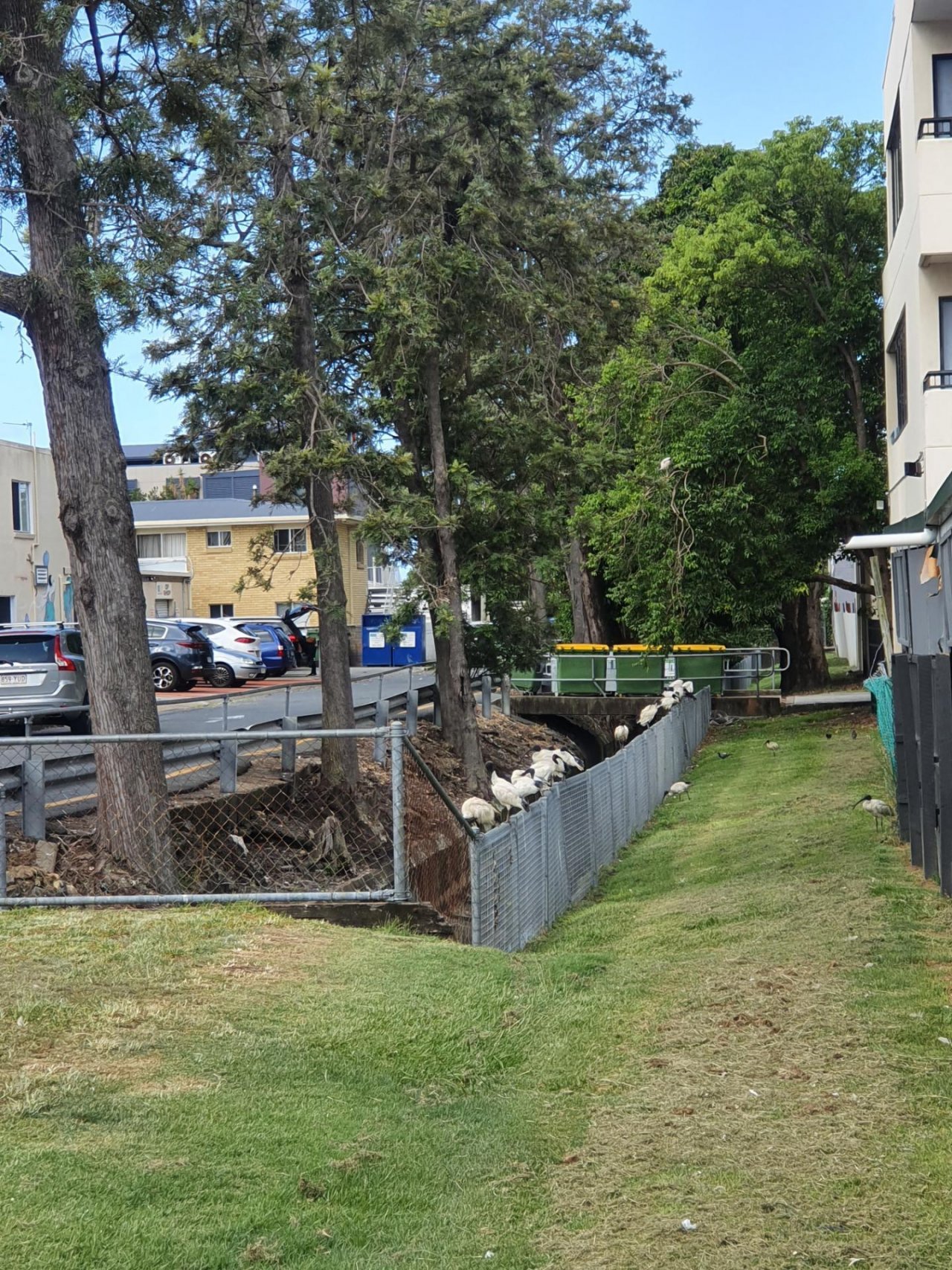White Ibis spotted by Janice Hipperson: “Foraging along grassy area near stormwater drain and resting along fence.” in the Big City Birds App on 09.02.2021