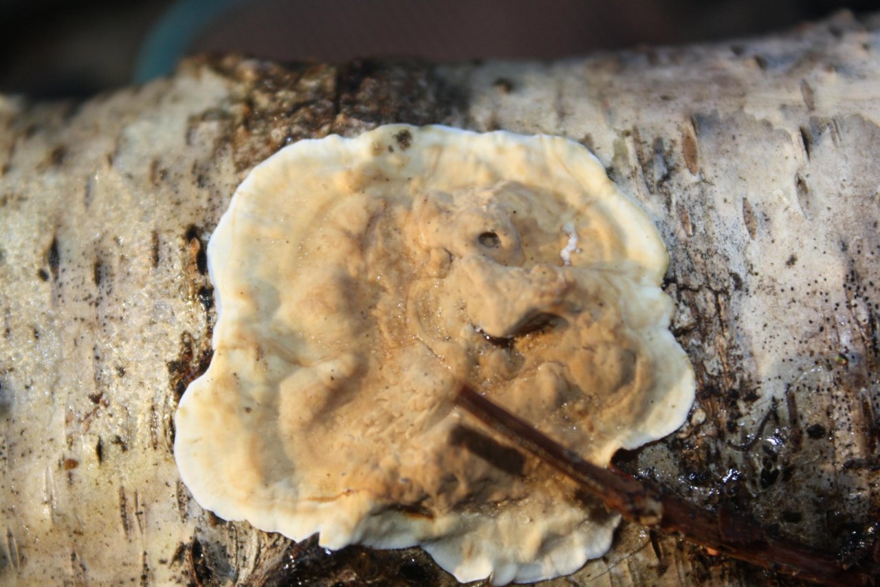 Zottiger Schichtpilz spotted by Treitner: “Striegelige Schichtpilz (Stereum hirsutum), on a branch; deciduous tree; lying; deadwood;” in the Pilzfinder App on 01.01.2021